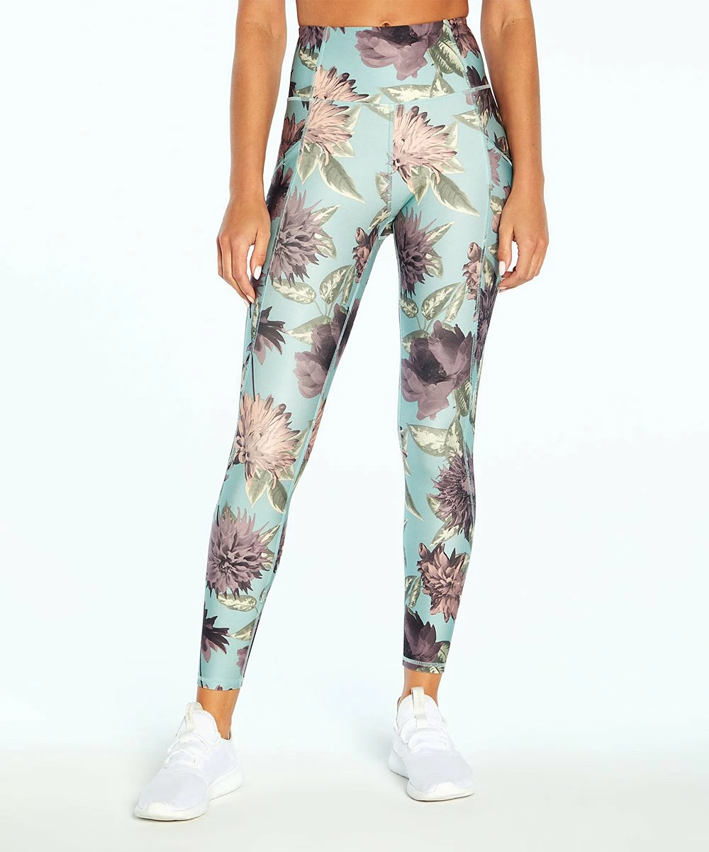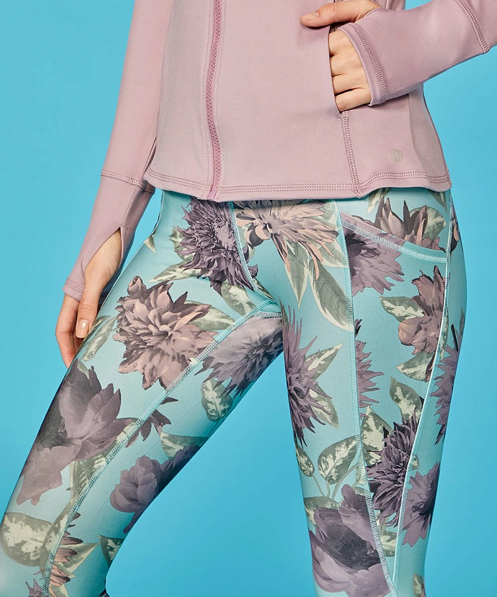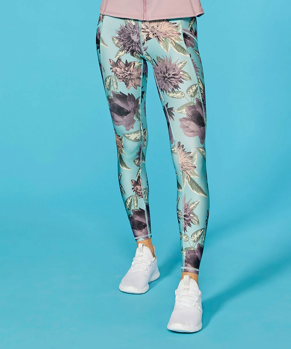 Floral ankle leggings sporting a flattering four-inch waistband and handy pockets.