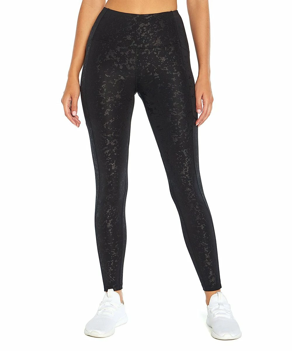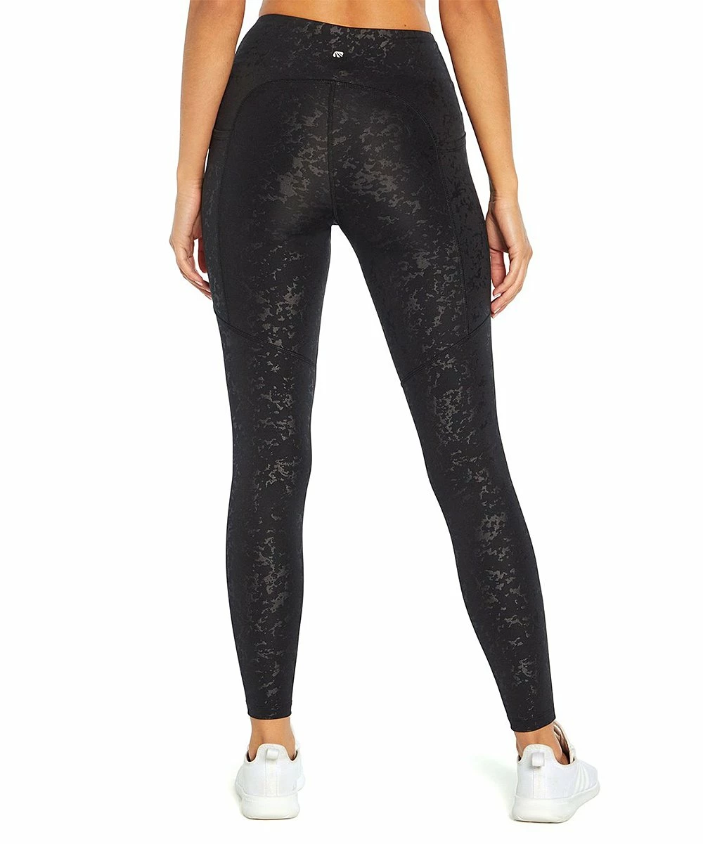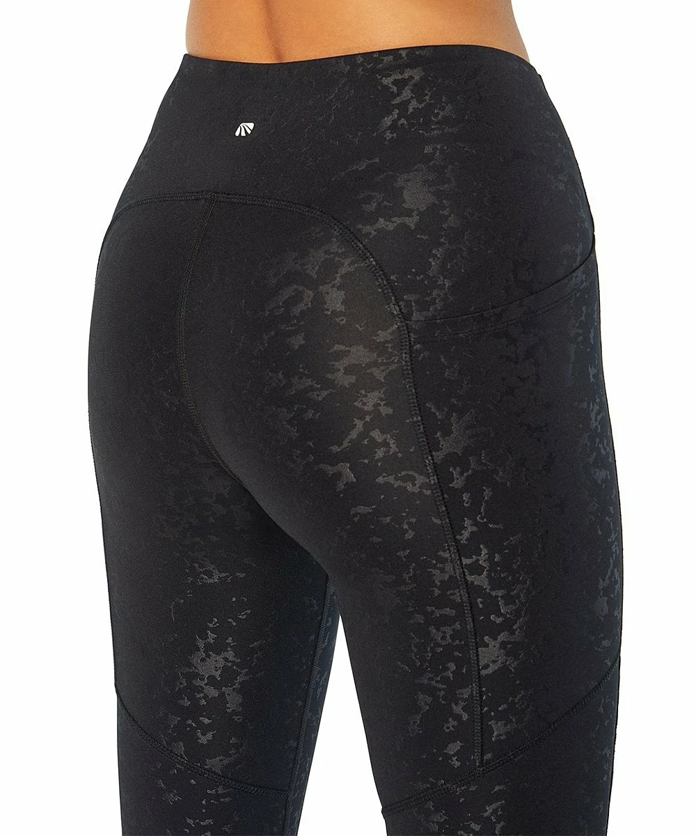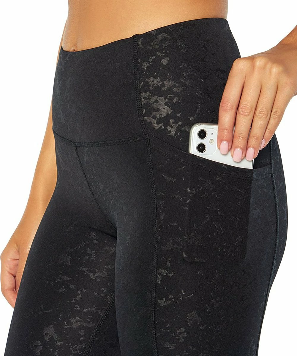 Sleek leggings with an embossed pattern and high waist Side pockets and fitted shape.