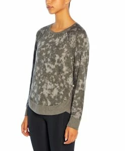 After workouts or on lounge days, slip into this scoop neck pullover designed with a subtle tulip hem and an abstract camo print. Generous length in the back drapes effortlessly over your favorite leggings.