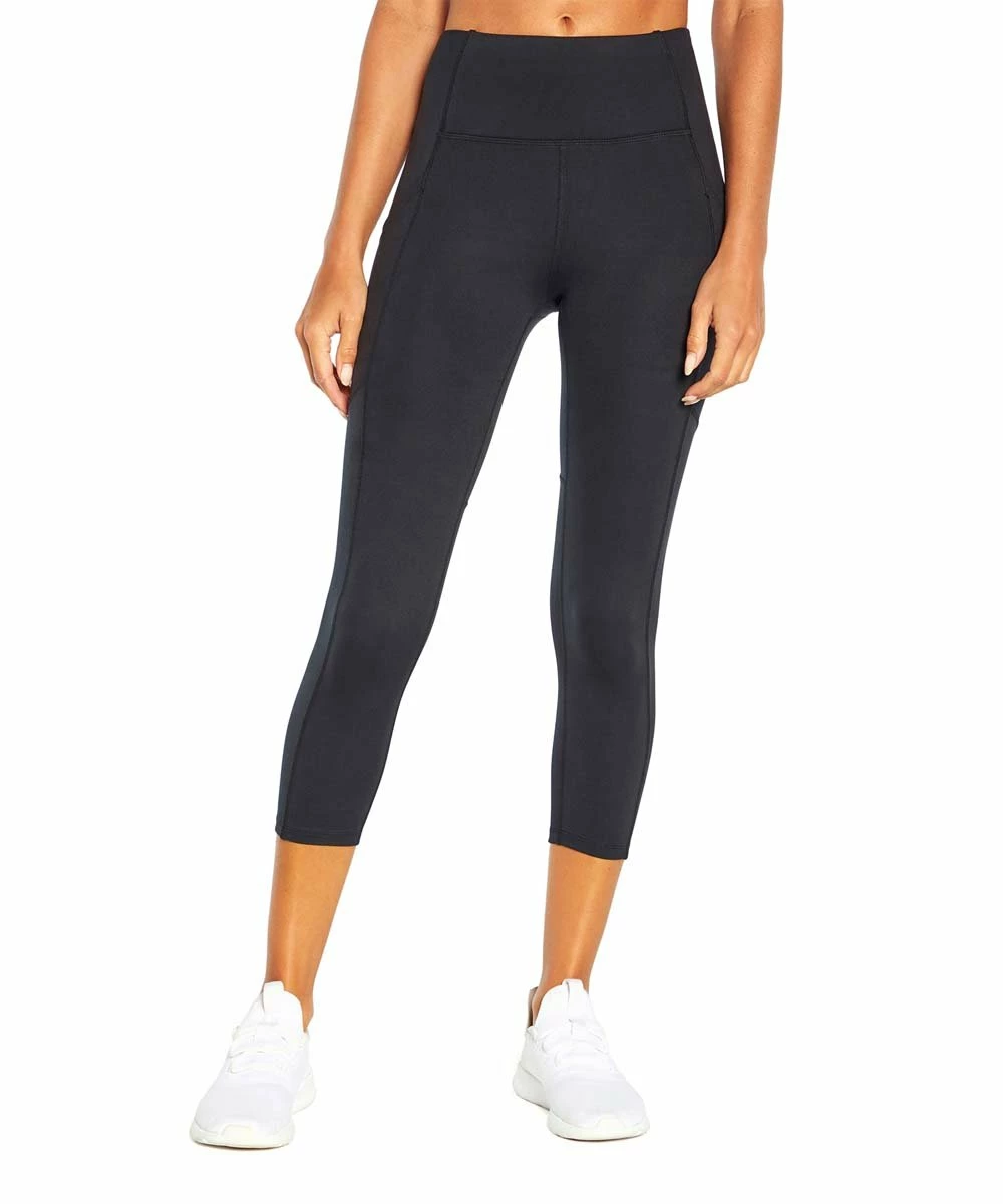 Stay comfy throughout your next workout with this pair of stretchy capri leggings with side pockets for a spot to comfortably stash your phone.