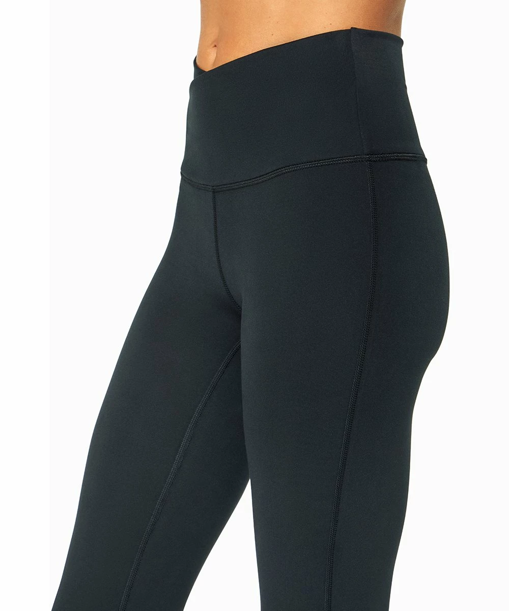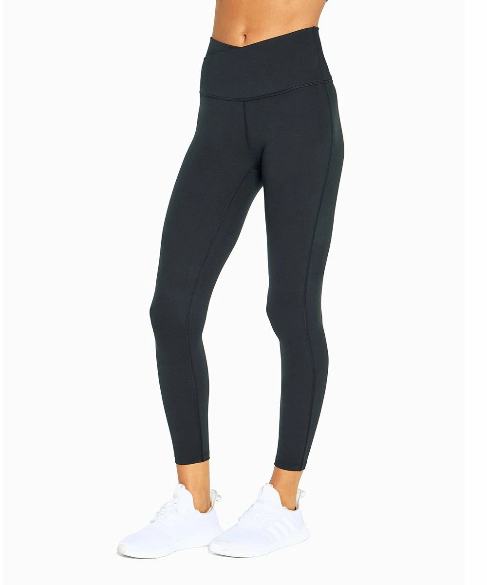 Leggings featuring a subtle V-accent at the waist and stretch-infused fabric.