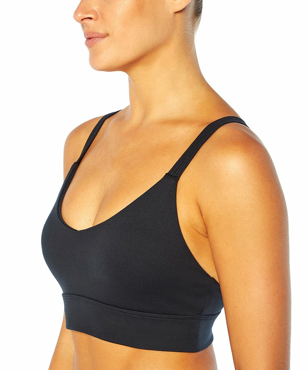 A strappy back lends stylish appeal to this sports bra crafted from stretch-enhanced fabric for a supportive, flexible fit that moves with you.