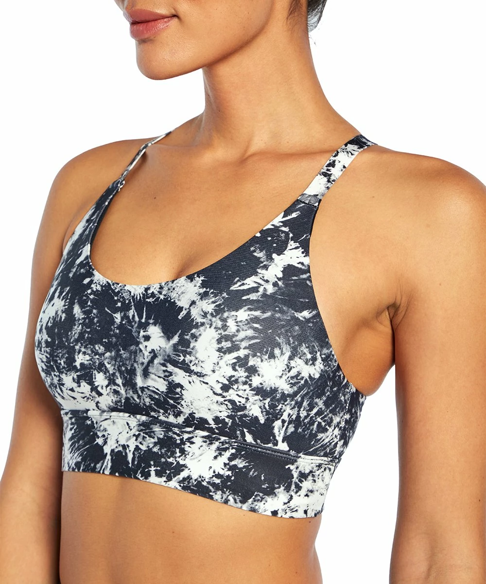 Get active and stay comfortable with this sports bra that features a tie-dye print, a sleek silhouette and lightweight, breathable fabric that can help keep you cool.