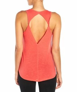 This athletic tank features an open back with twist detail. Made with soft rayon-blend fabric.