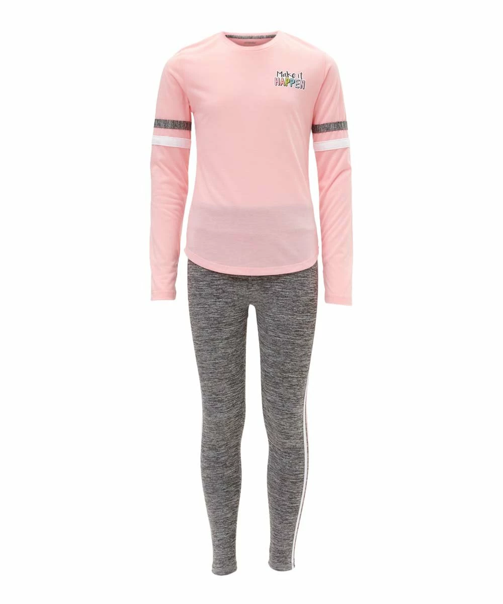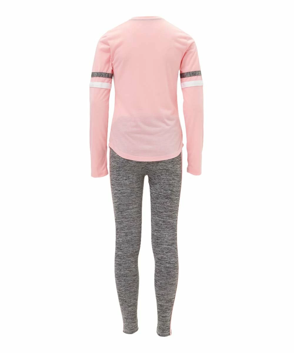 - Includes coral blush top and heather gray leggings (two pieces total)