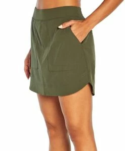 This solid-color skort is made with athletic fabric with plenty of stretch and handy side pockets.