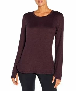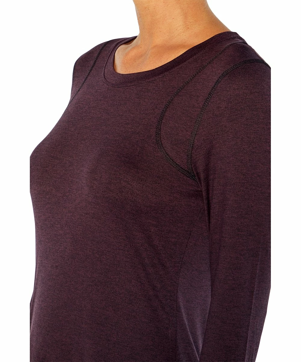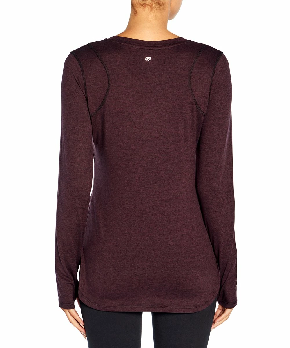 Soft stretchy fabric in this easy-care long-sleeve top lends a sleek look.