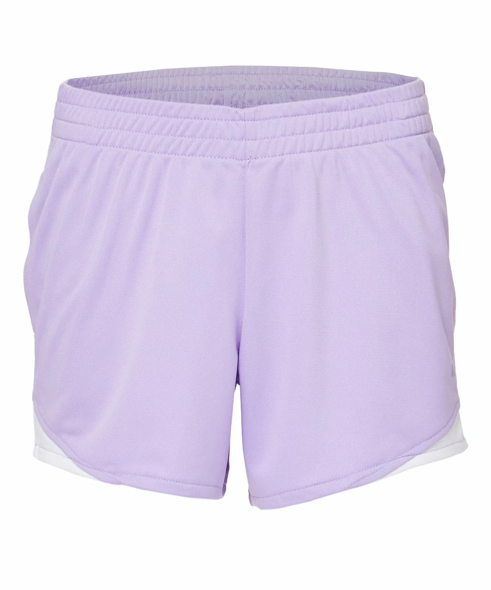 These shorts are made from polyester have an elastic waist band and a color block design.