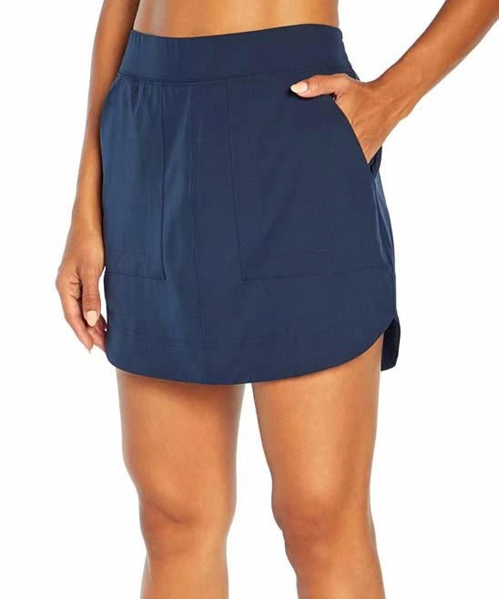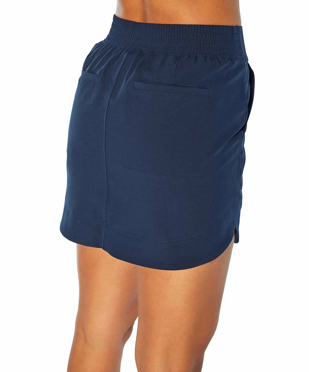This solid-color skort is made with athletic fabric with plenty of stretch and handy side pockets.