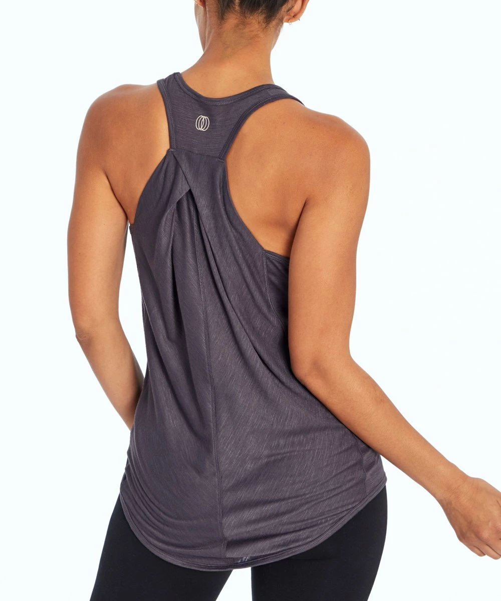 A relaxed fit and sporty racerback design make this tank a comfy, stylish and practical pick for your active wardrobe. Scoop neck and back pleat details.