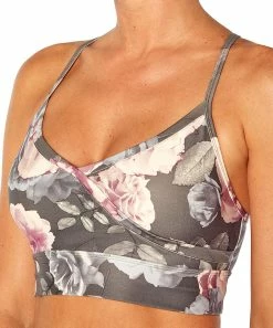 Elevate your athleticwear with this this dry-wik finish sports bra with a surplice neckline and strappy back for added visual appeal.