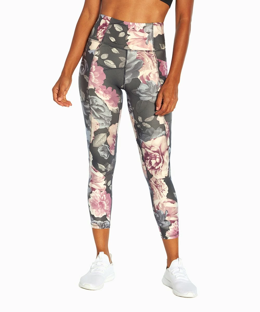 Leggings featuring an elegant floral print, handy side pockets for a mobile phone and stretch-infused fabric.
