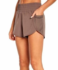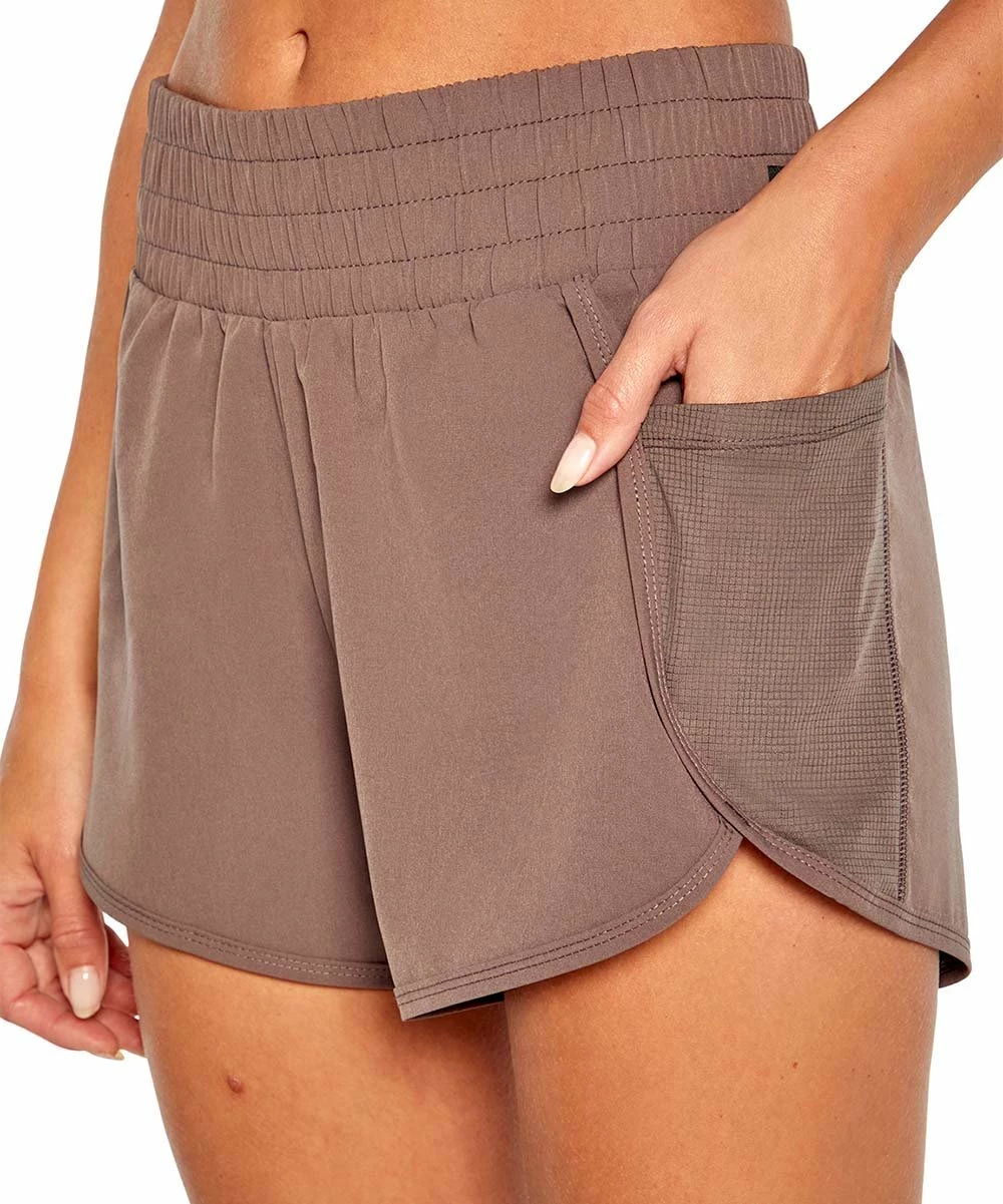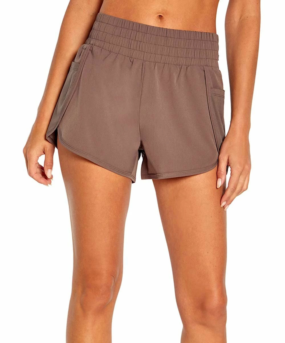 Make your fitness dreams a reality with these dolphin-hem shorts featuring built-in pockets and wide elastic waistband.