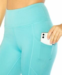 These solid-color leggings offer an fitted silhouette with wide waistband, tummy control and seam detail. Handy side pockets.