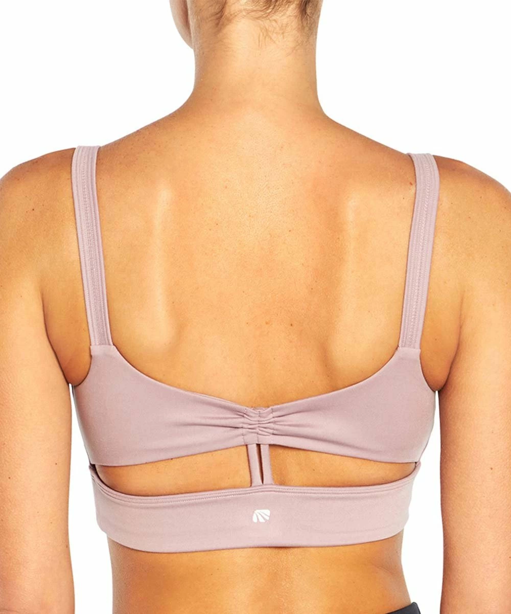 Spruce up your athleticwear with this dry-wik finish sports bra featuring dual back straps for added visual appeal.