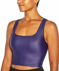 The glossy fabric gives this square-neck sports bra a flattering profile while the stretch-enhanced fabric creates a comfortable fit. Dry-wik finish and inner shelf bra.