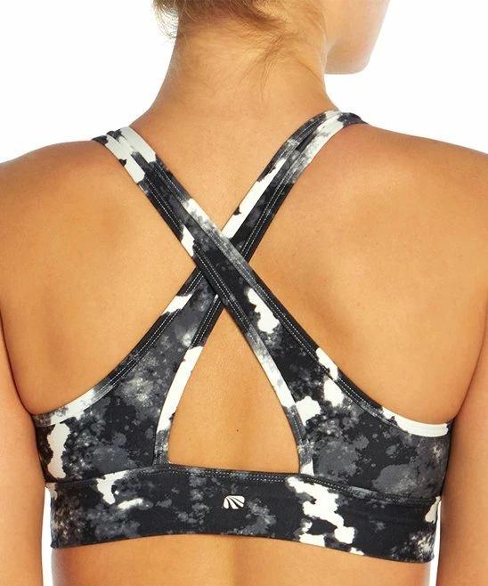 This high-impact support sports bra features printed moisture-wicking fabric with a wide underband and cross-strap back.