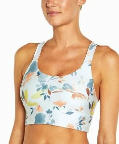 This workout-ready bra features supportive racerback straps and stretch-enhanced fabric for a comfortable fit.