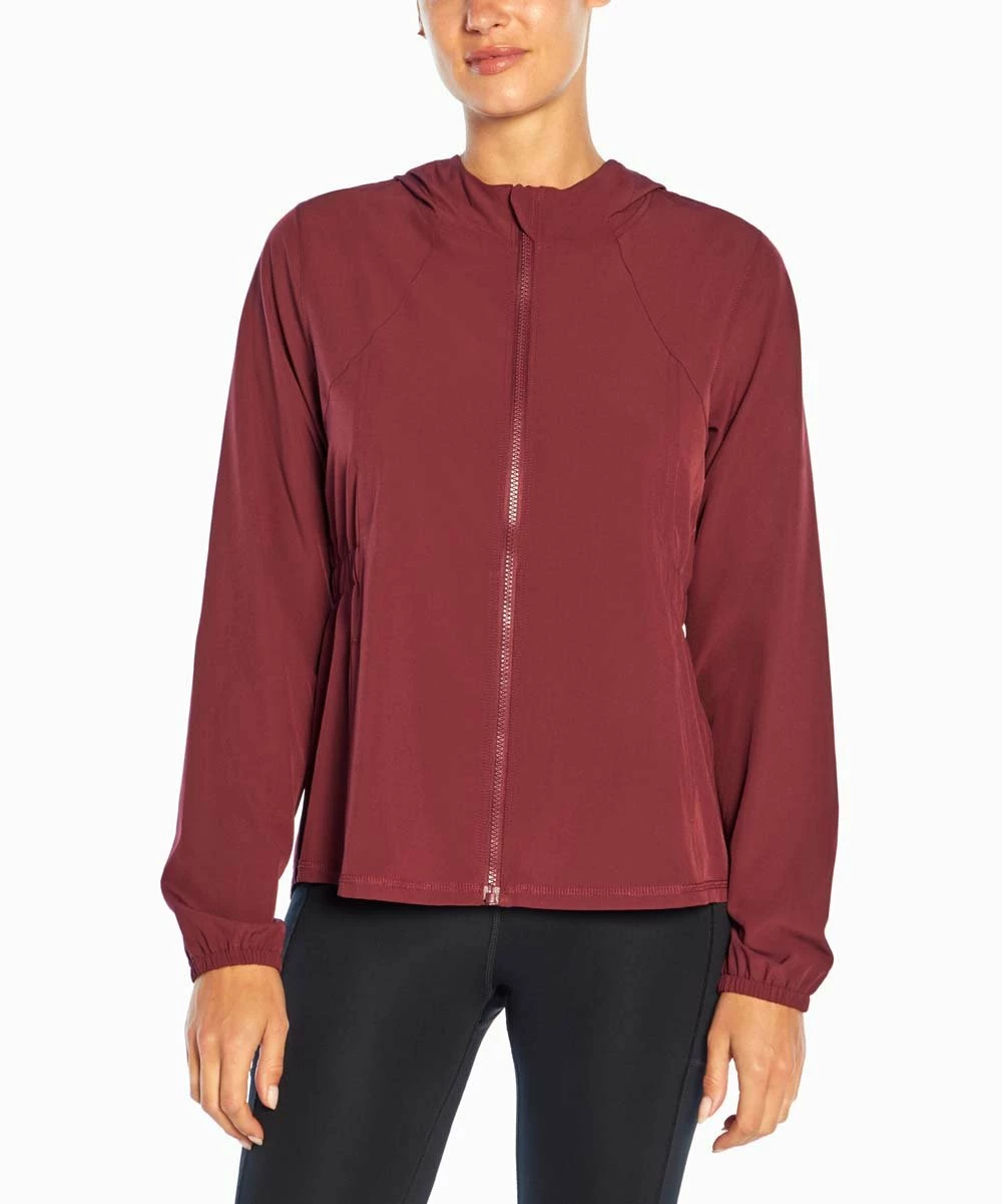 Tackle cool days in style with this zip-up jacket featuring a hooded neckline and a horizontal vent in the back.